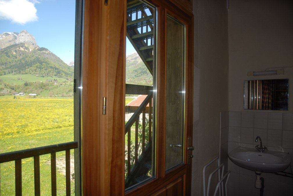 1er étage : chambre donnant sur le balcon, avec coin lavabo